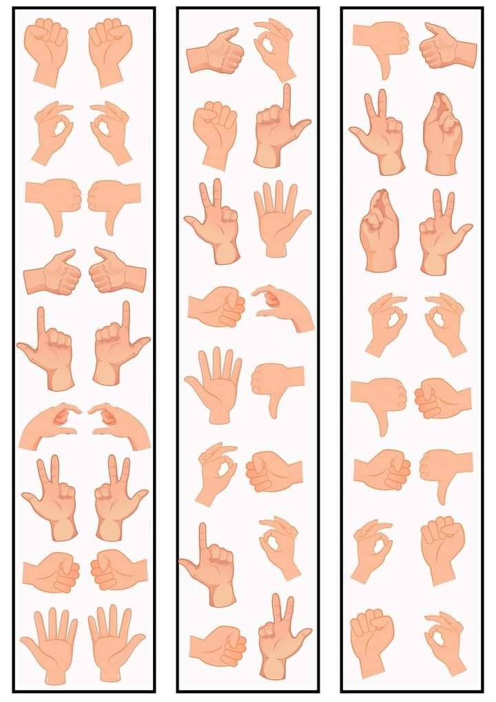 Переводя взгляд с одной пары изображений на другую меняйте позы на пальцах правой и левой руки.